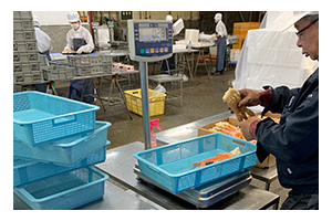 グレースびきを施したカニは北海道の加工工場で最終加工を行います。