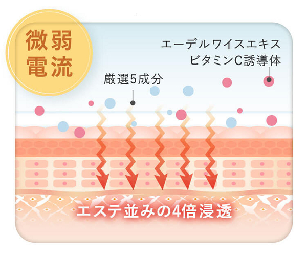 この微弱電流はエステサロンでも使用されている浸透技術です。