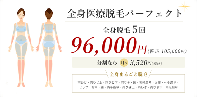 顔とVIO以外の部位を対象にした全身脱毛プランです。
