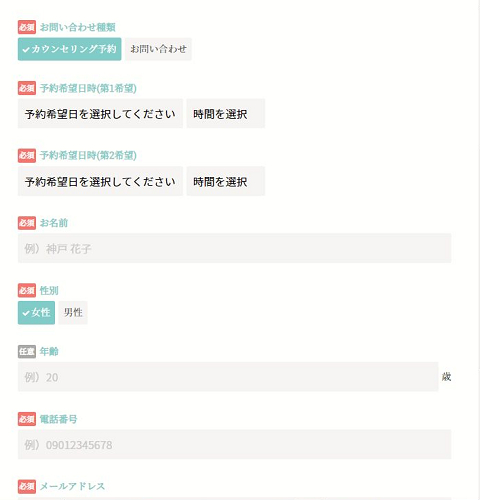 お問い合わせフォームに移動するので、あなたの氏名や性別、電話番号、メールアドレスなどを入力していきます。