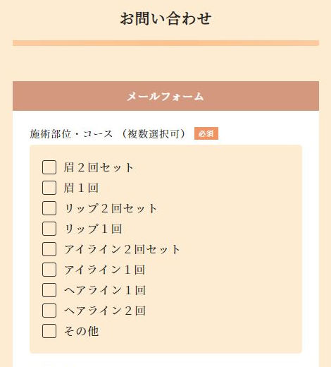 施術部位・コースやあなたの氏名、電話番号、メールアドレス、予約希望日などを入力していきます。
