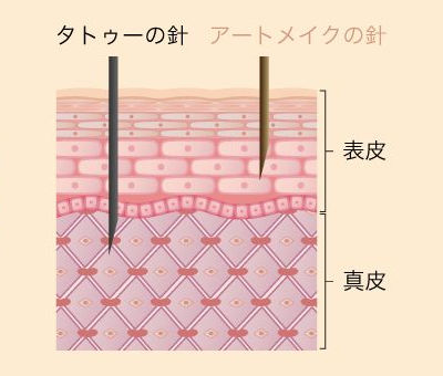 一見するとタトゥーと同じに思えますが、色素を注入する深さが異なります。