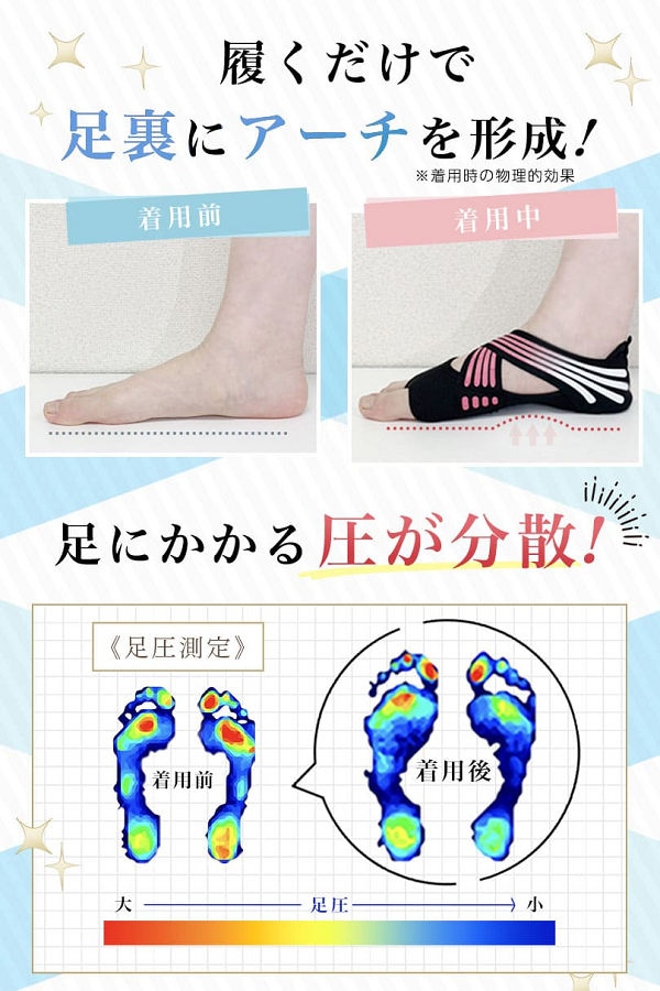 履くだけで理想的な足裏アーチを形成することができます。