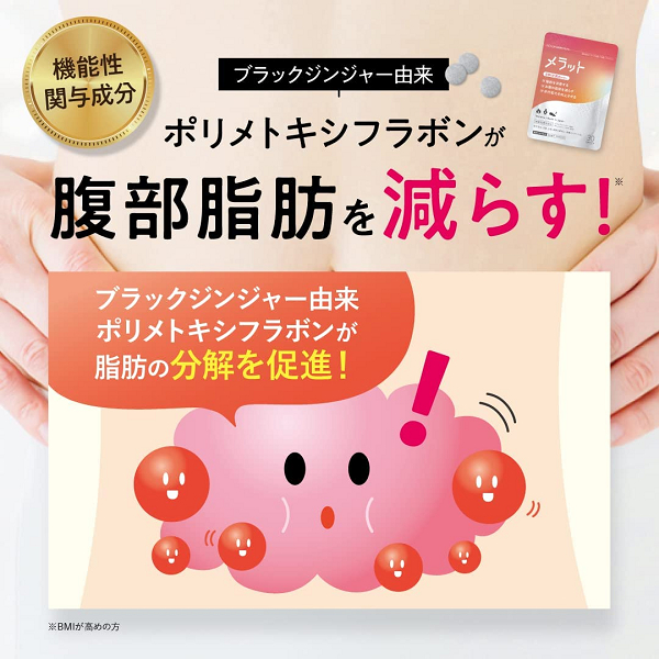 メラット(Meratto)サプリでは、機能性関与成分のブラックジンジャー由来ポリメトキシフラボンが主要成分として採用されています。