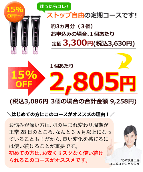 単品よりお安く購入でき、いつでもストップできるリスクのないコースです。