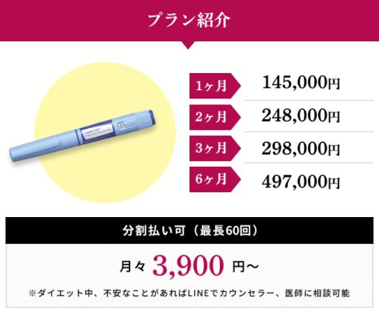 プレミアム禅クリニックのGLP-1ダイエット治療は期間に応じて料金が設定されています。