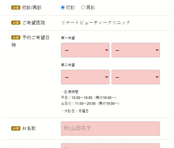 リナートビューティークリニックは『完全予約制』になっているので、まずはカウンセリング予約をするところからスタートします。