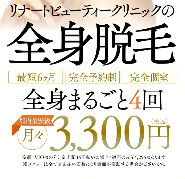 リナートビューティークリニックは全身脱毛の料金プランがリーズナブルです。