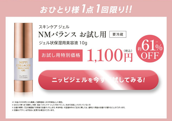 かなりお得感があるので、スキンケアジェルNMバランスの購入を検討しているなら、お試し用から始めると良いですね。