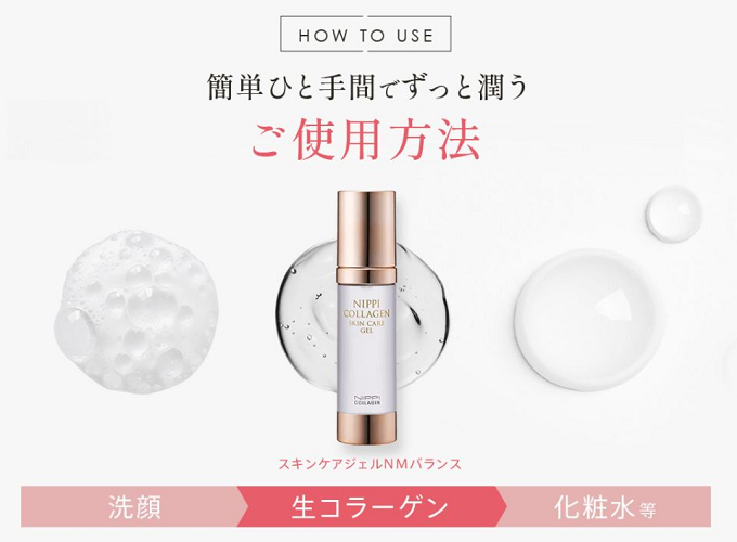 スキンケアジェルNMバランスにはニッピ独自の『生コラーゲン』が贅沢に配合しています。