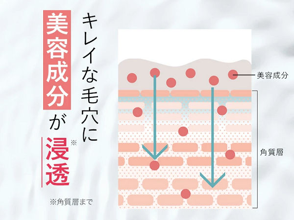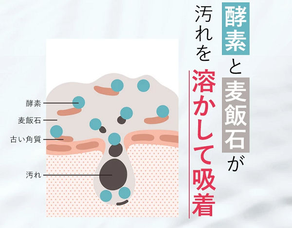 酵素と麦飯石が汚れを溶かして吸着するだけでなく、その汚れを取り除いたキレイな毛穴に美容成分が浸透していきます。
