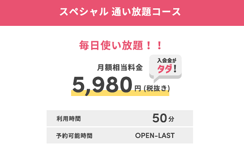 月額相当料金5,980円(税抜)で、毎日店舗に通い放題となっています。