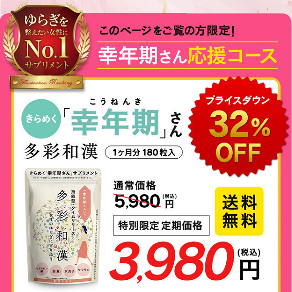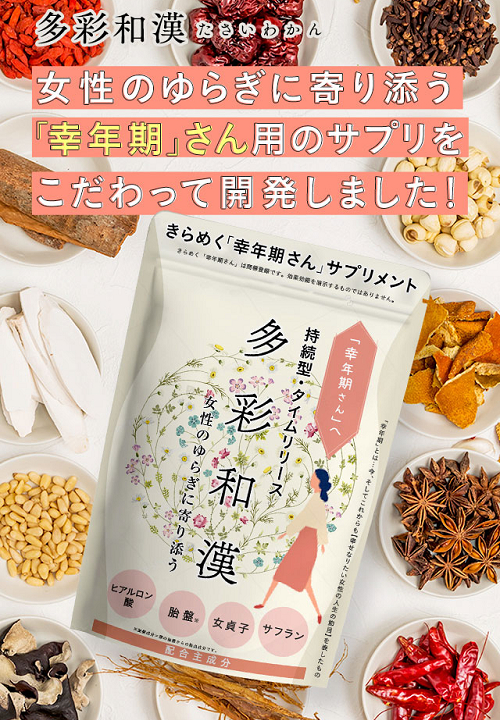 多彩和漢(たさいわかん)は、40~50代の女性向けゆらぎケアサプリメントです。