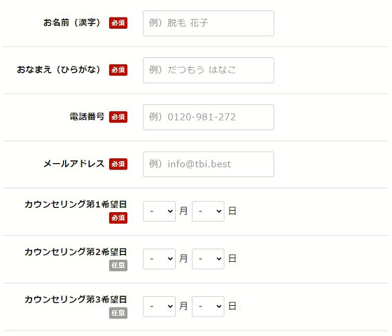 あなたの氏名や電話番号、メールアドレス、カウンセリング希望日、希望連絡方法などを入力して下さい。