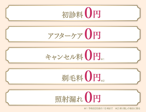 但しキャンセル料0円は予約日2日前の15時まで、剃毛料は剃り残しの場合のみとなっています。