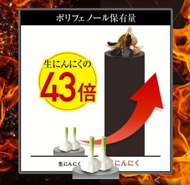 黒にんにくは従来の生にんにくと比べてポリフェノールの保有量が43倍も多いです。