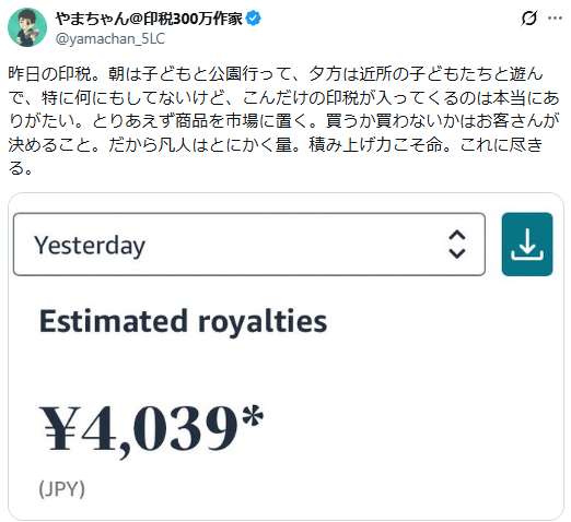 2023年あたりからようやくコツをつかみ出し、そこから一気に印税が伸びました。