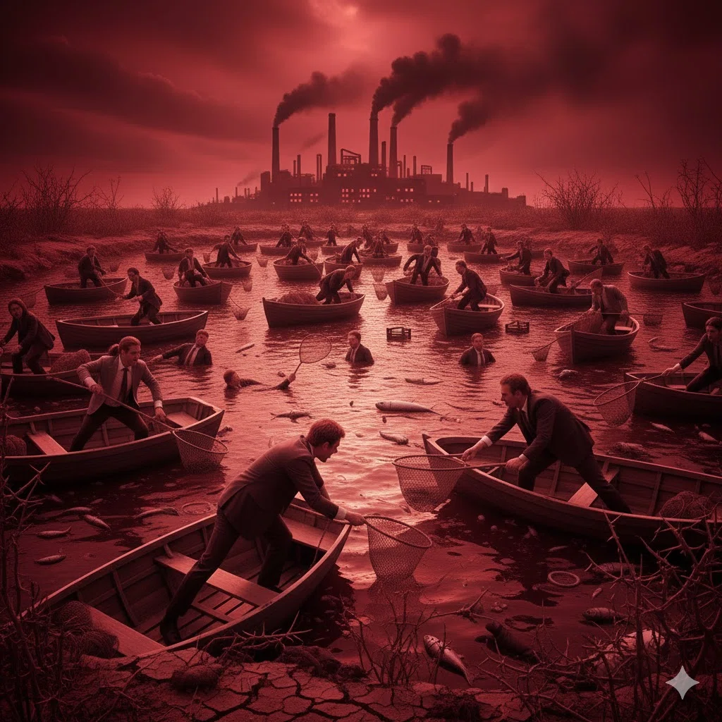 狭い池にいる魚をみんなで奪い合っている状態ですね。