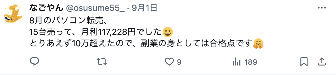 ✅ あらゆる副業からパソコン転売にたどり着いたなごやんさん✨