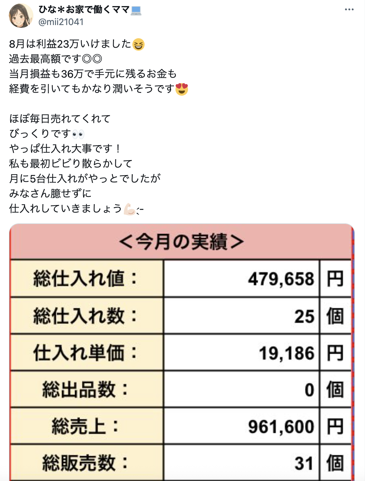 - 利益単価は1個につき、最大1〜2万円オーバー✨