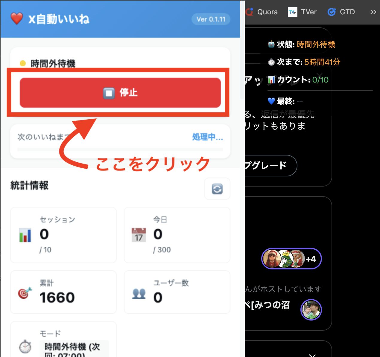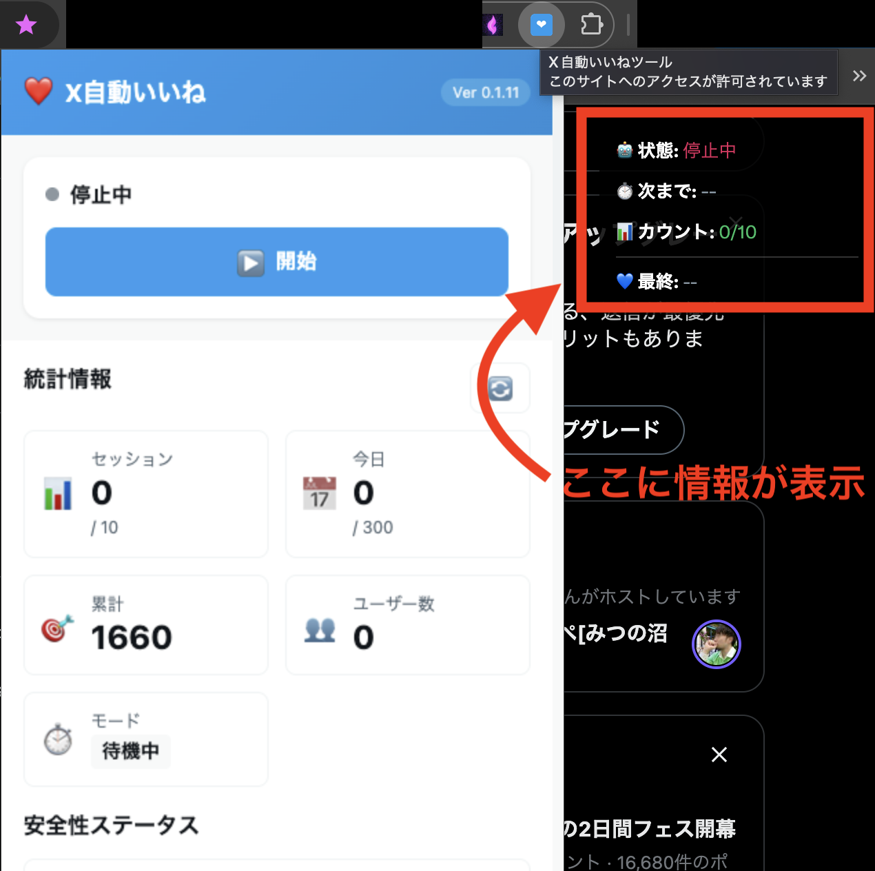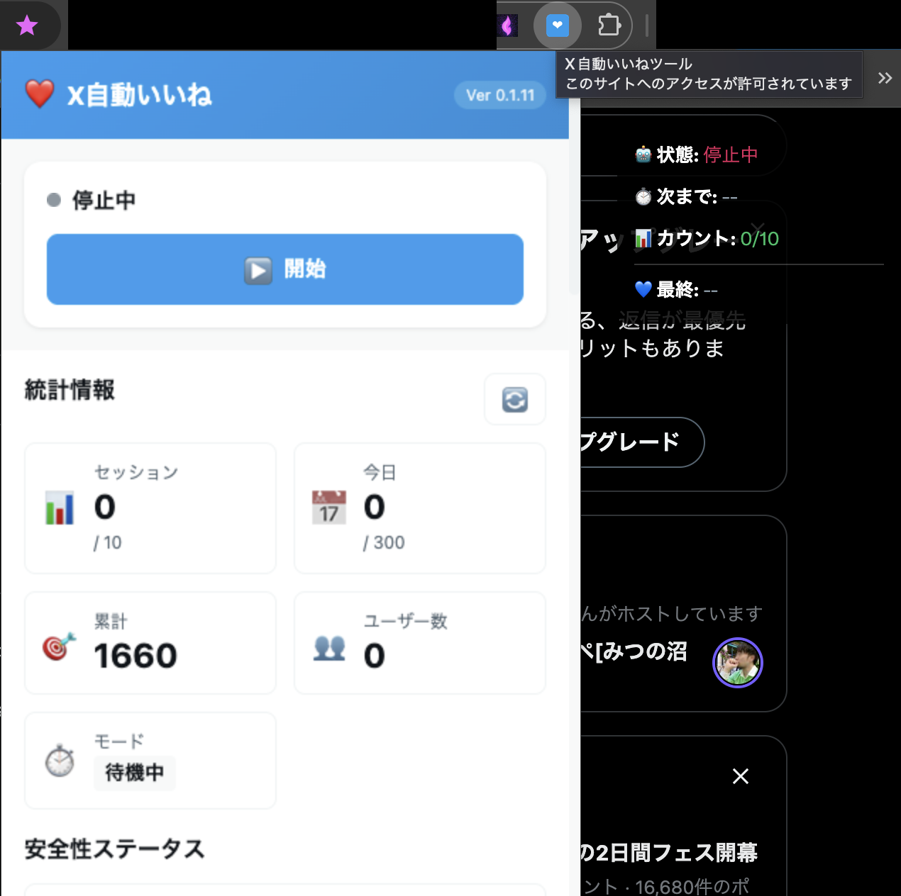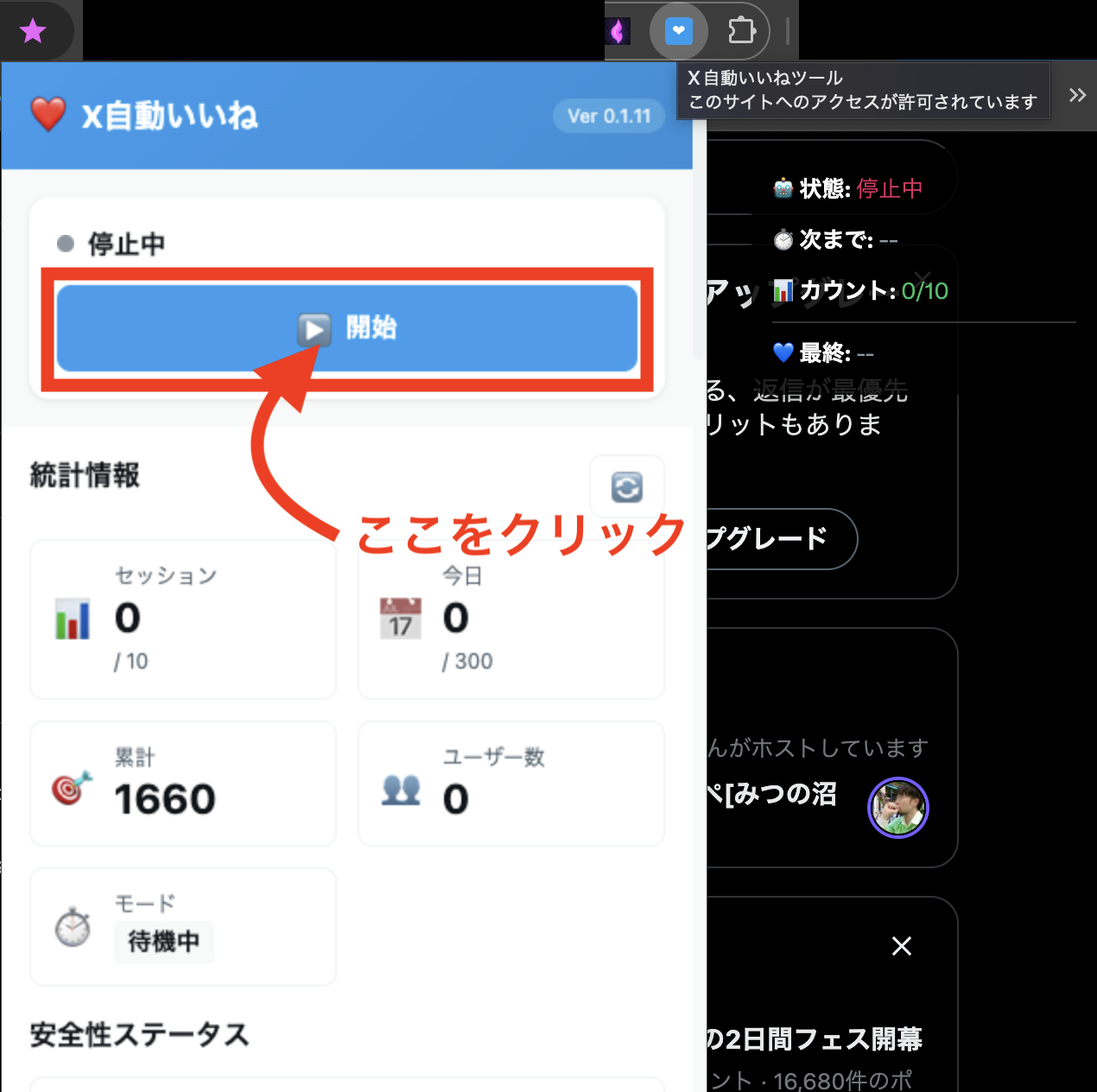 - 本ツール → Xで自動的にいいね