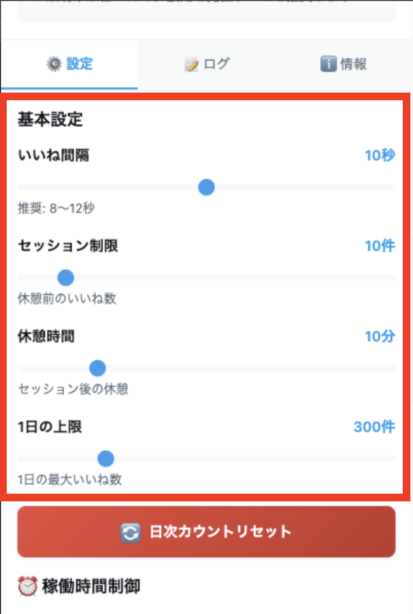 いいね間隔(最小): 8秒