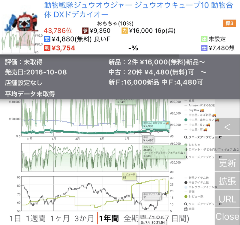 例えば、↓のドデカイオーは非常に良いで4,980円が販売相場になりますが、僕の場合は売り方の工夫で9,980円で販売しました。