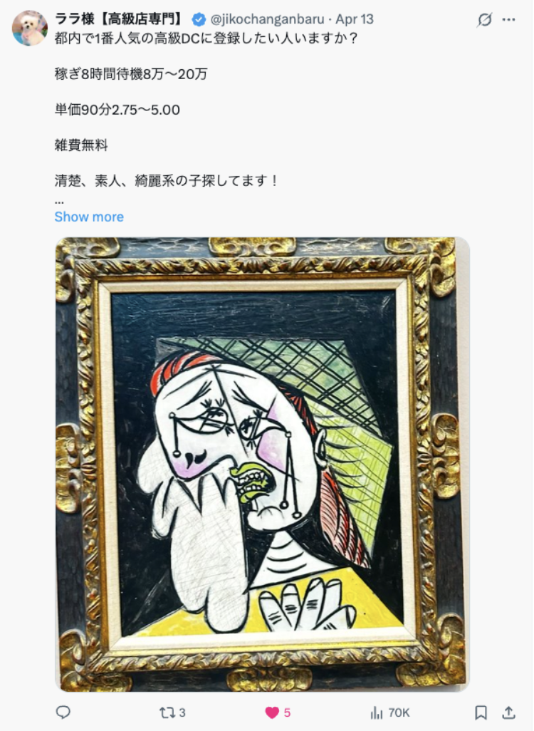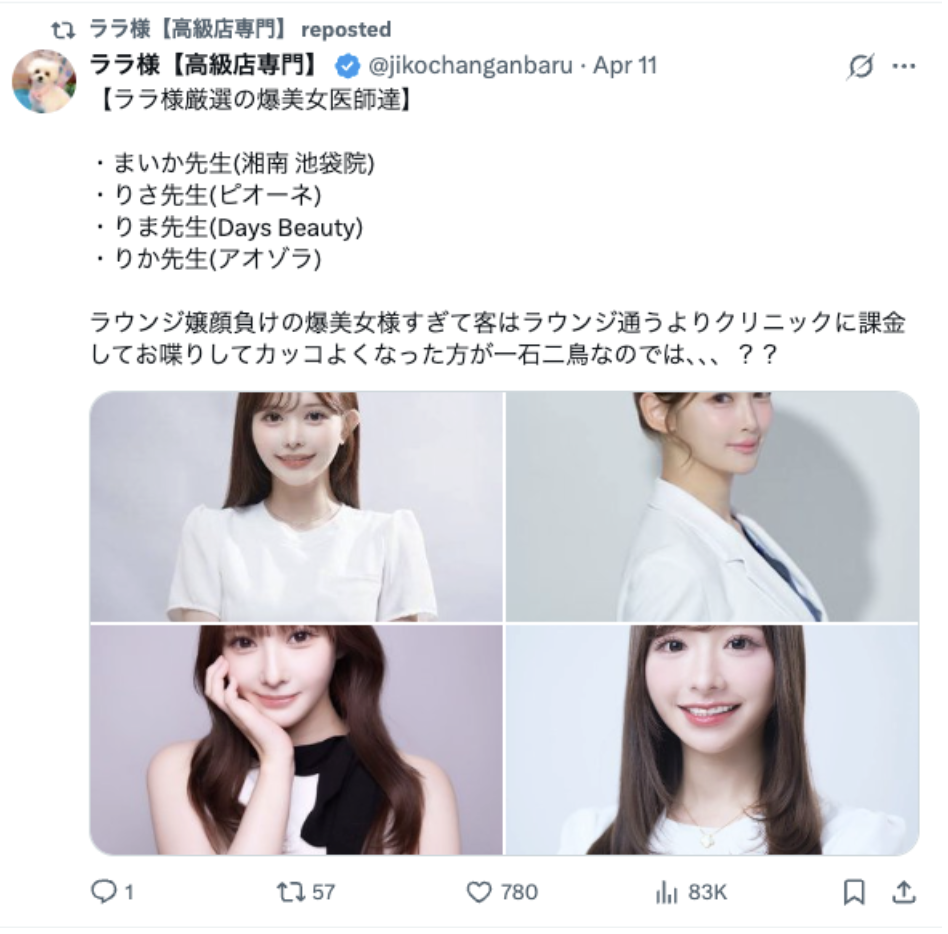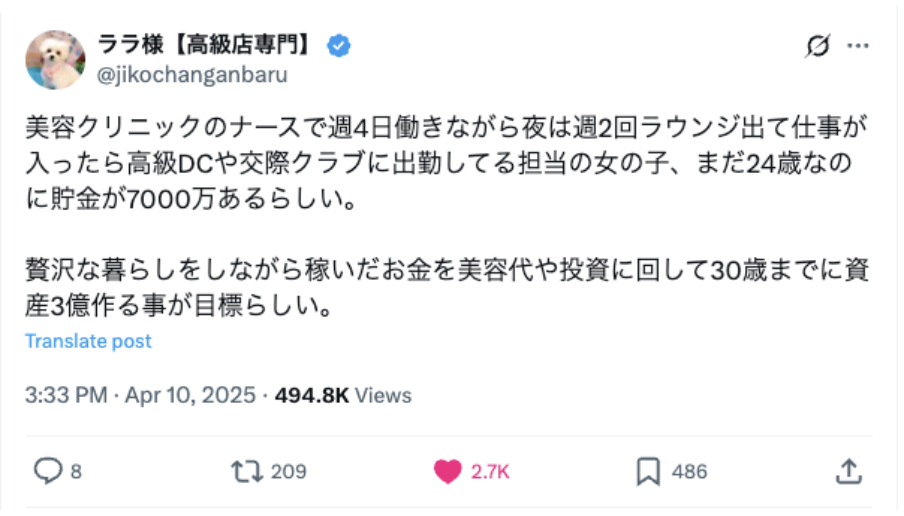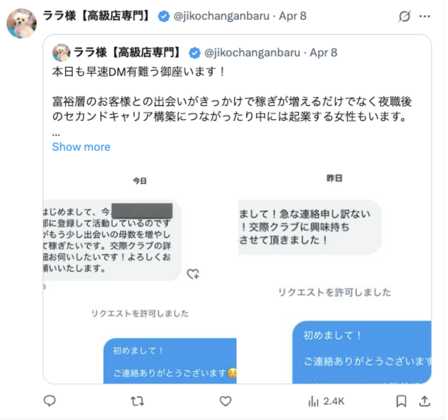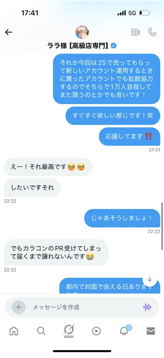 - 開設5日で爆美女から1日10人以上のDM殺到、