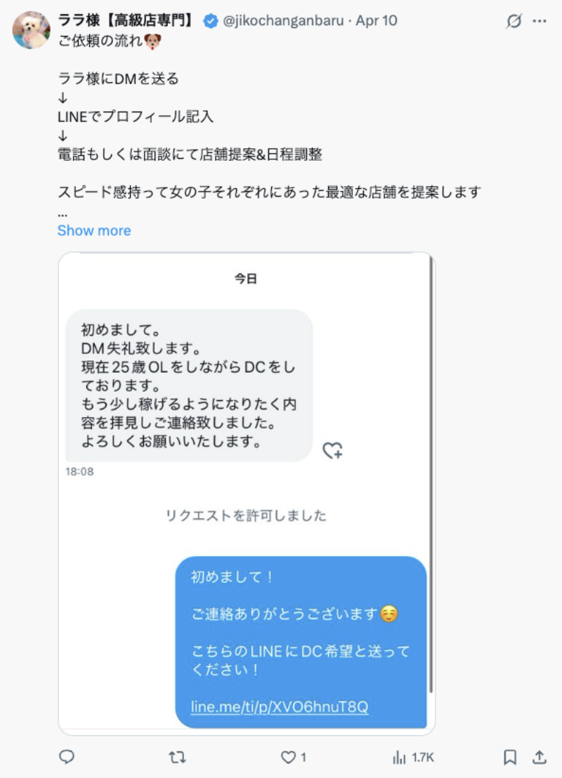 - DMからLINE移行→10分電話→即入店がポンポン決まる